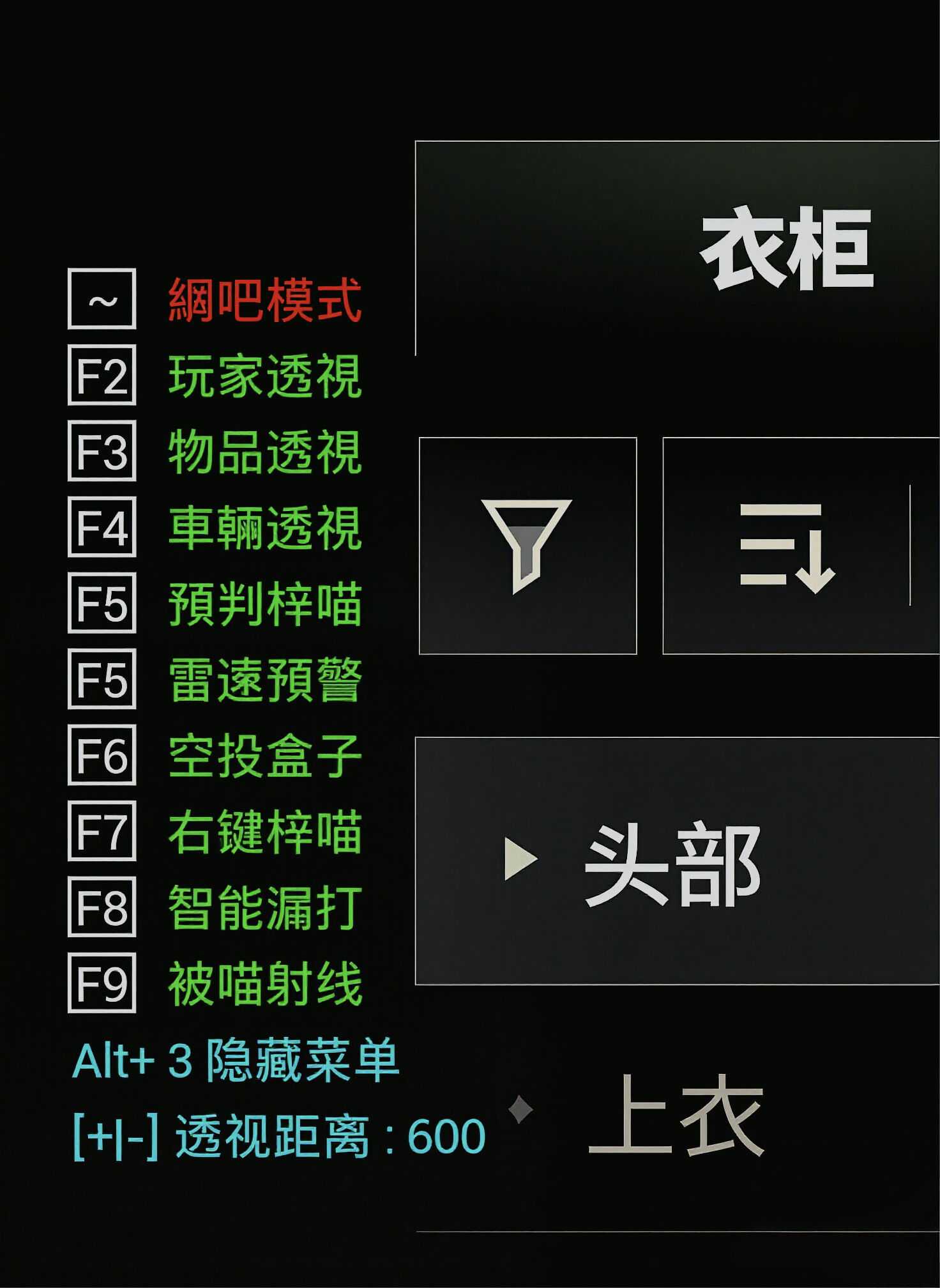 功能介绍:透视-自苗-漏打-物品显示-大小地图雷达 支持系统:W10 不支持:w11 F8:不能开 稳定性:小号娱乐 注:游戏必须无边框 辅助价格:12/8小时/20/天